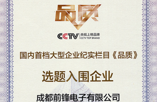 2016年2月央視首檔大型企業紀實欄目《品質》走進前鋒,記錄了前鋒從1958年建廠到現在半個多世紀的風云歲月。前鋒不僅用心在做優質的產品