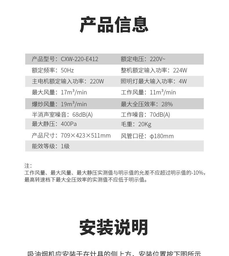 前鋒近吸式吸油煙機E412
