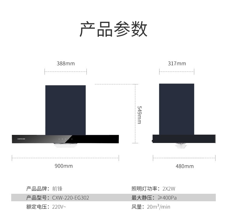 前鋒歐式吸油煙機EG302