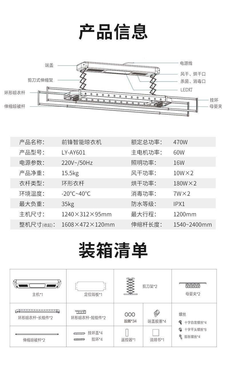 前鋒智能晾衣機AY601