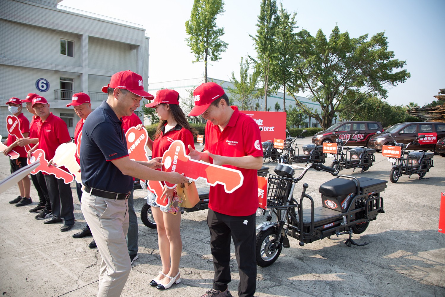 為獎勵取得卓越成績的經銷商,更為了加強服務品質,提升終端市場競爭能力,拿下全年銷售目標?;顒蝇F場,董事長楊鋼為優秀經銷商和業務人員頒發了前鋒服務車“金鑰匙”,開啟了前鋒售后服務形象的全面統一,服務質量全面提升的新征程。