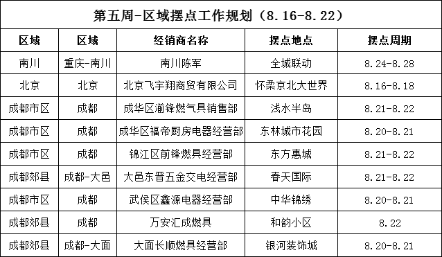 服務(wù)中國行 全國擺點(diǎn)信息(8.16-8.22)