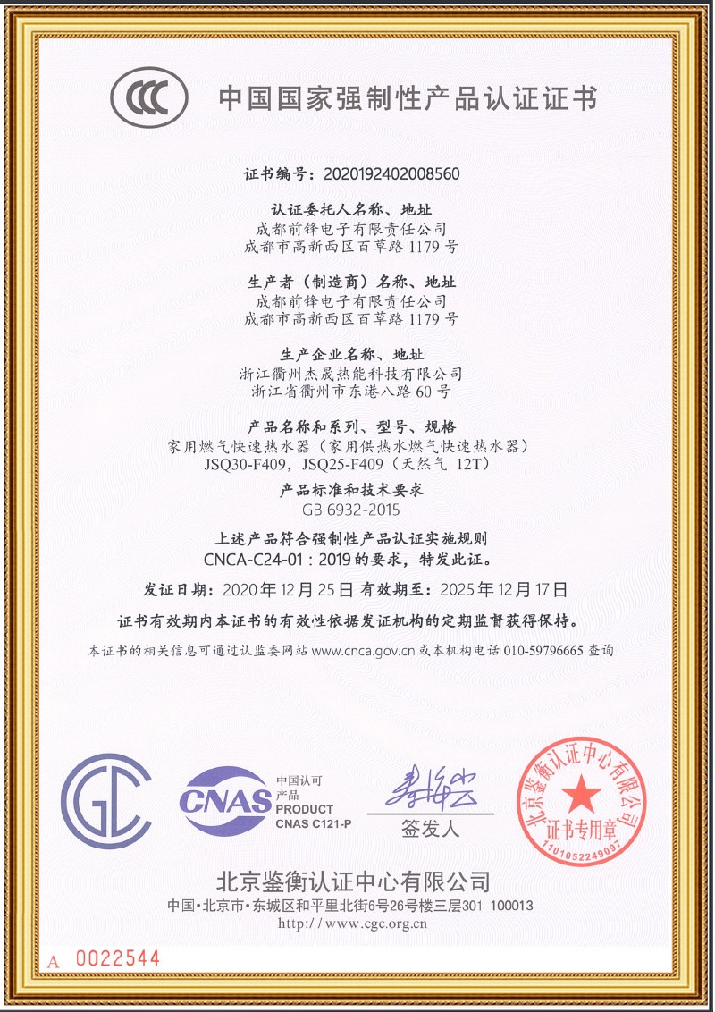 前鋒恒溫式熱水器F409